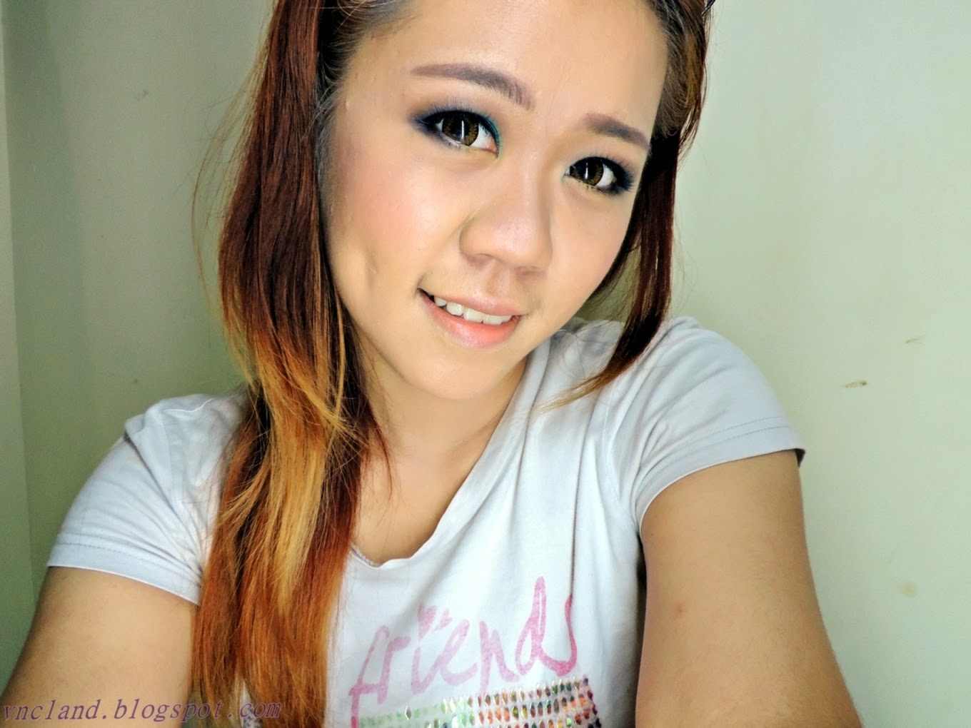 1. baurkan e/s warna hijau tosca ke seluruh kelopak mata (klo ga ada, km bisa campurin e/s biru dan hijau)